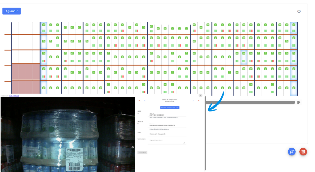 The operator monitors the mission in real time via the live video feed and can intervene if needed: optimize a scan, declare an anomaly (stock/rack), pause and resume the mission according to your operational constraints.